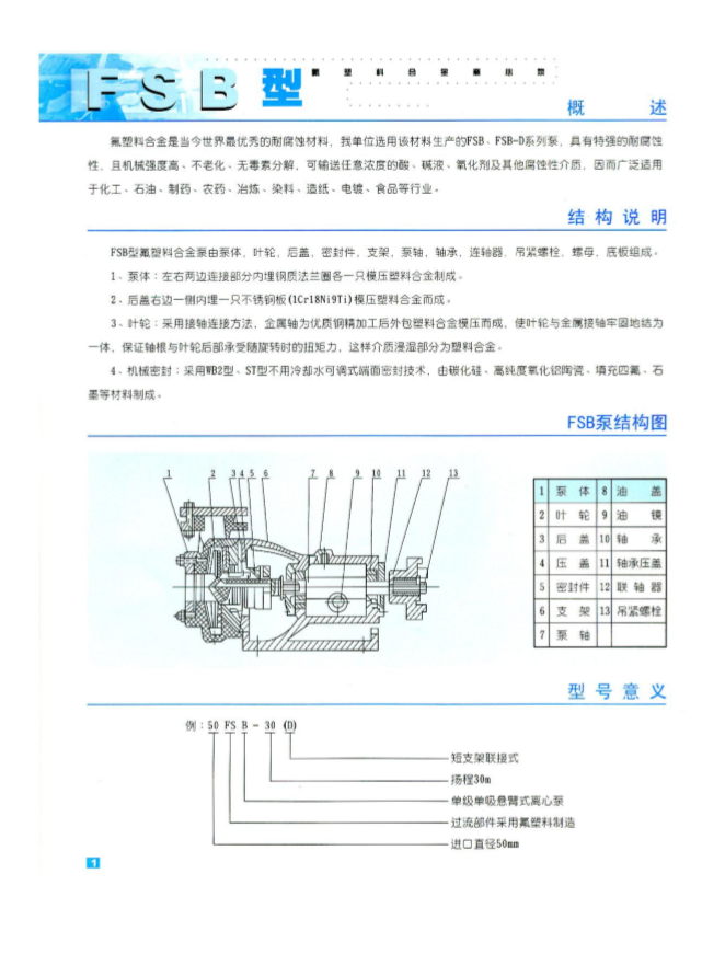 FSB型氟塑料離心泵特點